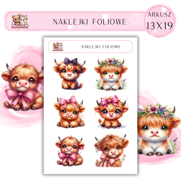 Naklejki foliowe Zwierzęta Włochate Krowy 6 sztuk na arkuszu, MaDam