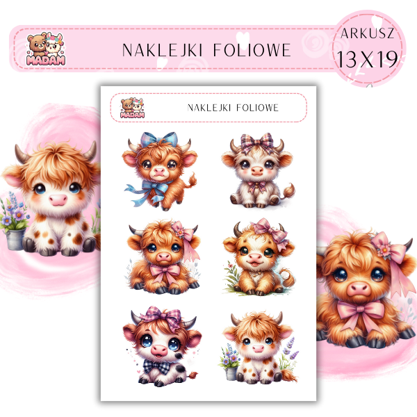 Naklejki foliowe Zwierzęta Włochate Krowy 6 sztuk na arkuszu, MaDam