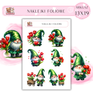 Naklejki foliowe gnomy Kwiaty 6 sztuk na arkuszu, MaDam