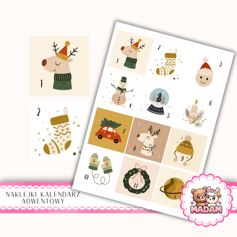Naklejki na Kalendarz Adwentowy dla Dzieci MaDam Creative