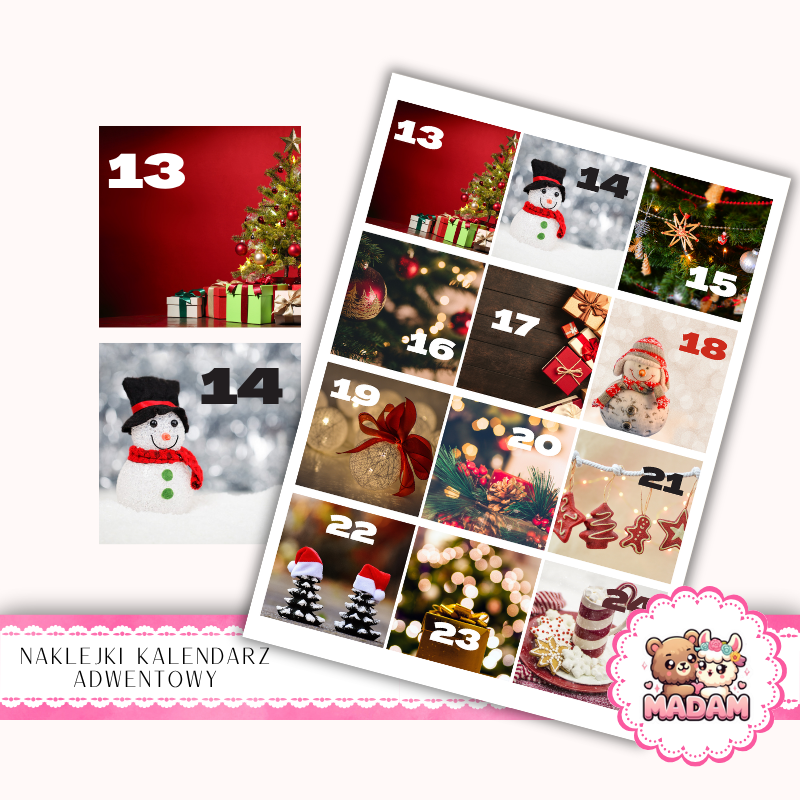 Naklejki na Kalendarz Adwentowy dla Dzieci MaDam Creative