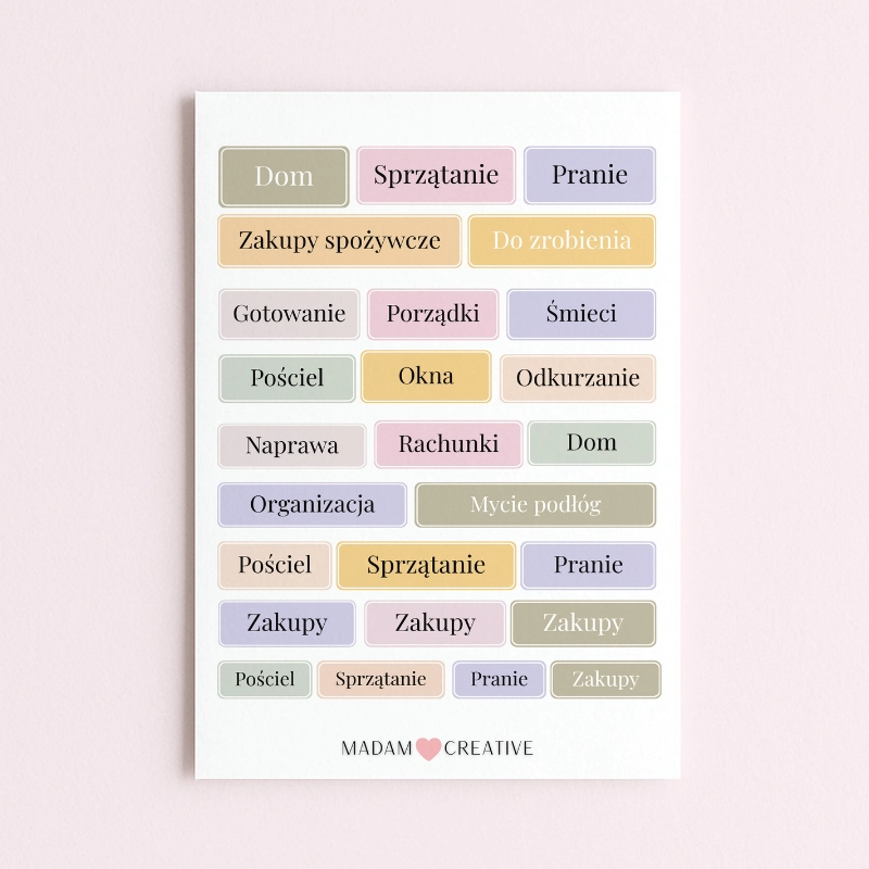 Producent MaDam CreativeNaklejki Ikony Funkcyjne do Planera i Bullet Journal Sprzątanie Domowe 13x9 MaDam Creative