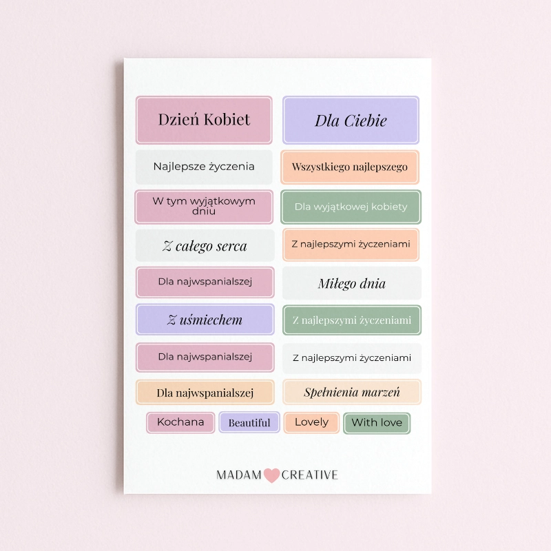 Naklejki z napisami Dzień Kobiet 13x19 MaDam Creative