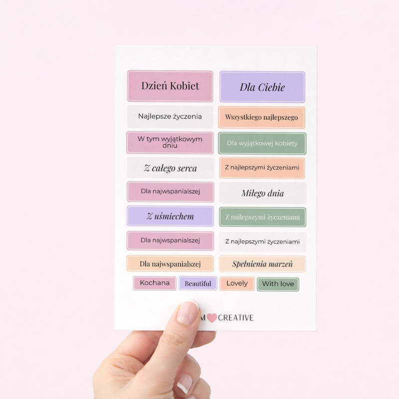 Dopełnij swoje projekty wyjątkowym detalem! Naklejki z napisami od MaDam Creative to starannie zaprojektowane zestawy haseł i życzeń, które nadadzą Twoim pracom profesjonalnego charakteru. Niezależnie od tego, czy przygotowujesz kartkę, personalizujesz album, czy ozdabiasz upominek dla bliskiej osoby – nasze naklejki to najprostszy sposób na efektowne „kropkę nad i”.