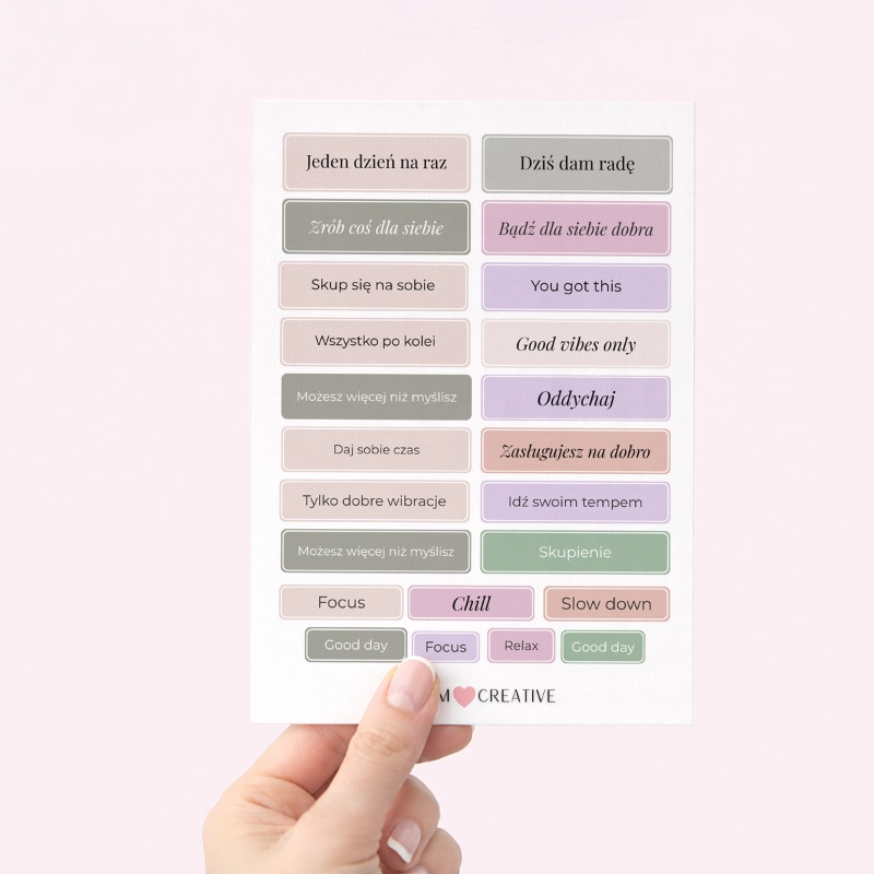 Dopełnij swoje projekty wyjątkowym detalem! Naklejki z napisami od MaDam Creative to starannie zaprojektowane zestawy haseł i życzeń, które nadadzą Twoim pracom profesjonalnego charakteru. Niezależnie od tego, czy przygotowujesz kartkę, personalizujesz album, czy ozdabiasz upominek dla bliskiej osoby – nasze naklejki to najprostszy sposób na efektowne „kropkę nad i”.