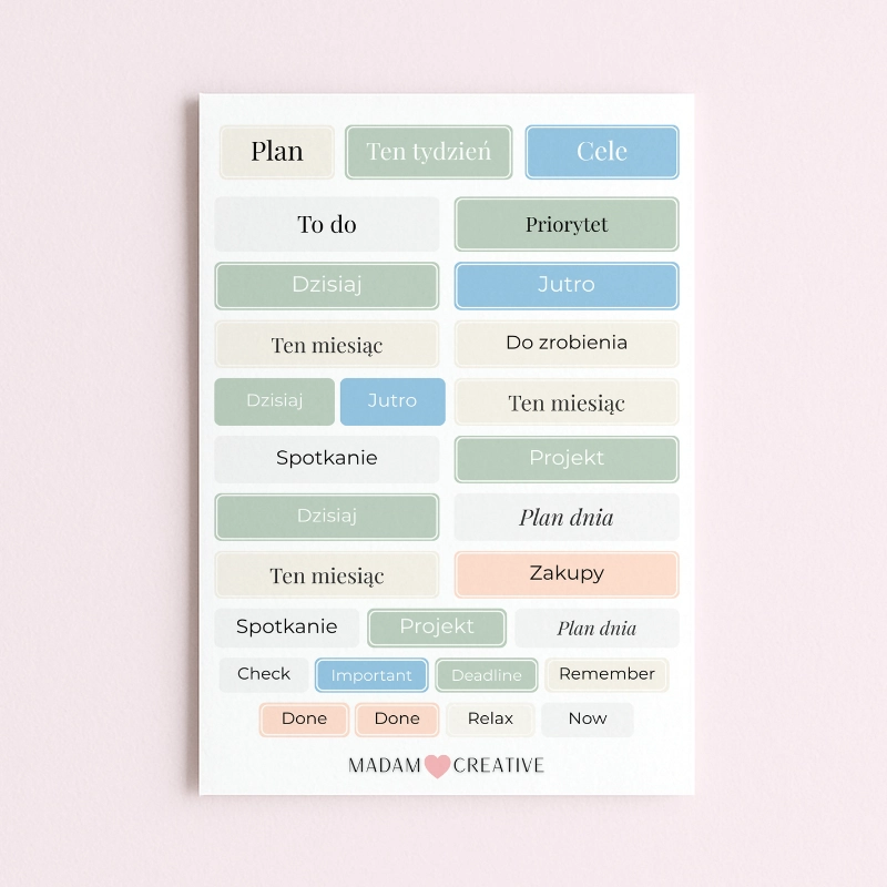 Naklejki z napisami Organizacja i Planowanie 13x19 MaDam Creative