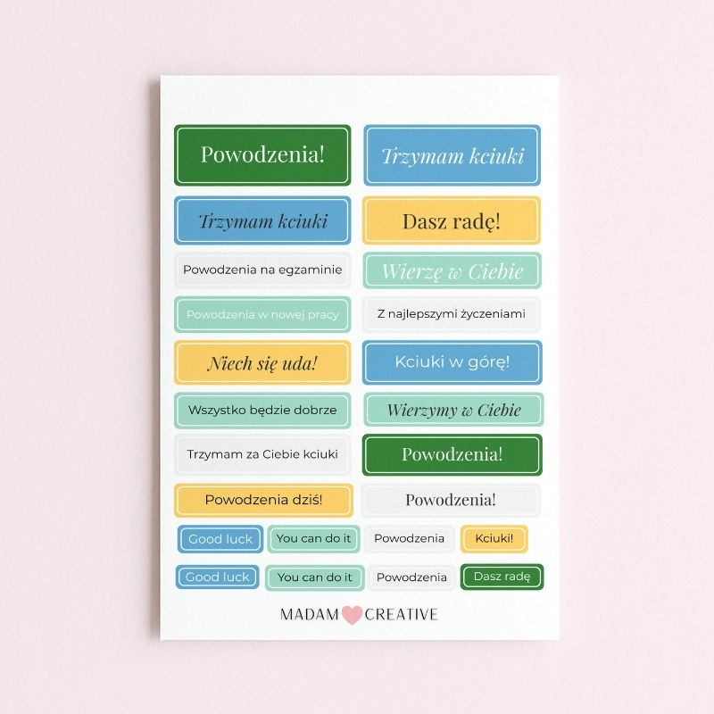 Naklejki z napisami Powodzenia i Trzymam Kciuki 13x19 MaDam Creative