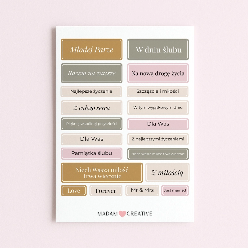 Naklejki z napisami Ślubne i Wesele 13x19 MaDam Creative