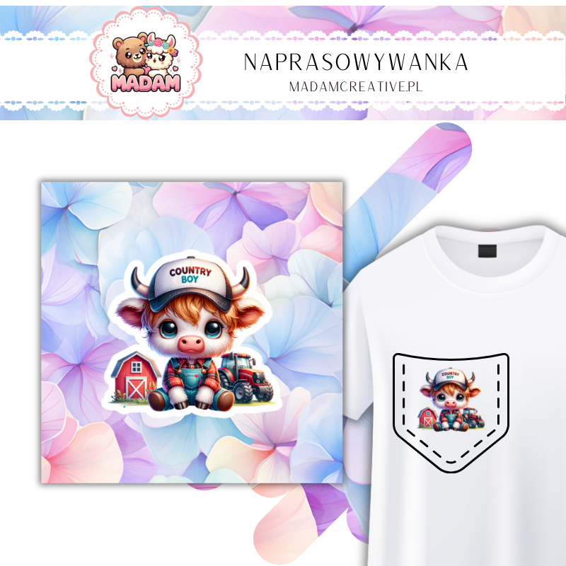 Naprasowywanka na ubrania MaDam - Country Boy Krówka - Mała krowa na farmie – uroczy wiejski styl! 6.5 cm