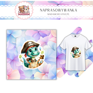 Naprasowywanka na ubrania MaDam - Dinozaur Pirat - Ahoj przygodo! Ten dinozauro-pirat wkracza na pokład! 12 cm
