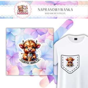 Naprasowywanka na ubrania MaDam - Krowa Coffee Addict - Krowa, która kocha kawę bardziej niż mleko! 6 cm