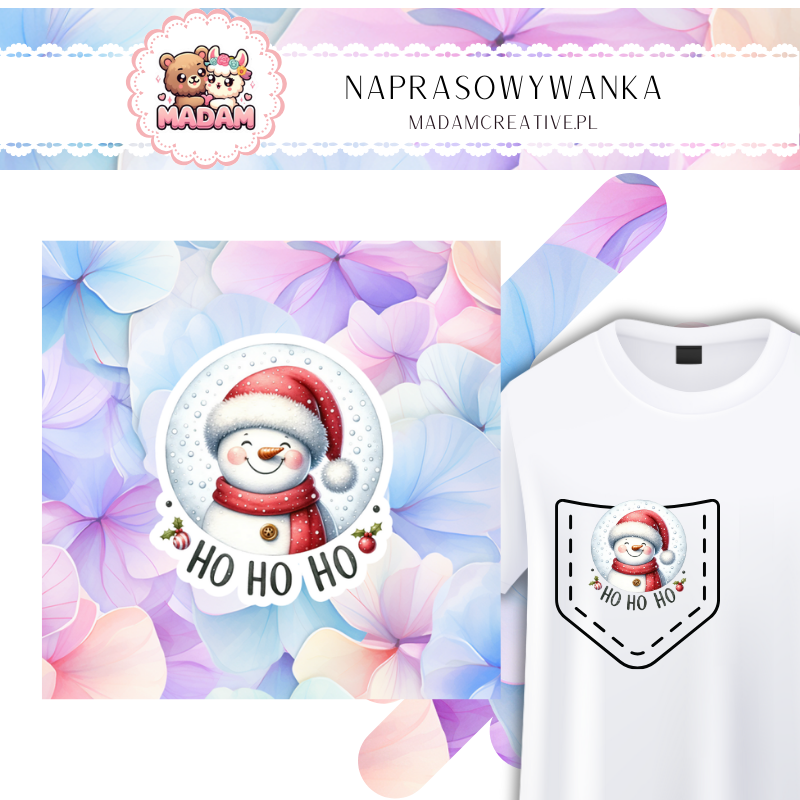 Naprasowywanka na ubrania MaDam - Świąteczny Bałwanek Ho Ho Ho - Uśmiechnięty bałwan na świąteczną przygodę! 4.5 cm