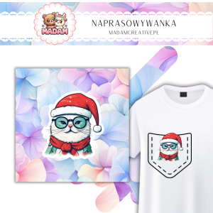Naprasowywanka na ubrania MaDam - Świąteczny Kotek w Okularach - Mądry kociak w świątecznym stylu! 5 cm