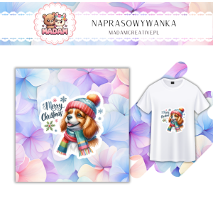 Naprasowywanka na ubrania MaDam - Świąteczny Piesek - Piesek w świątecznym stylu – idealny na zimowe wieczory! 13 cm