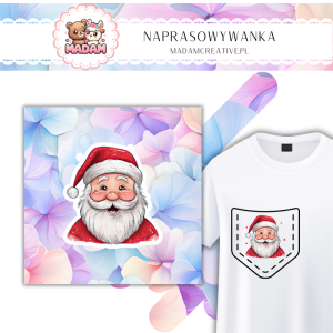 Naprasowywanka na ubrania MaDam - Święty Mikołaj Uśmiechnięty Mikołaj gotowy na każdą koszulkę! 6.5 cm