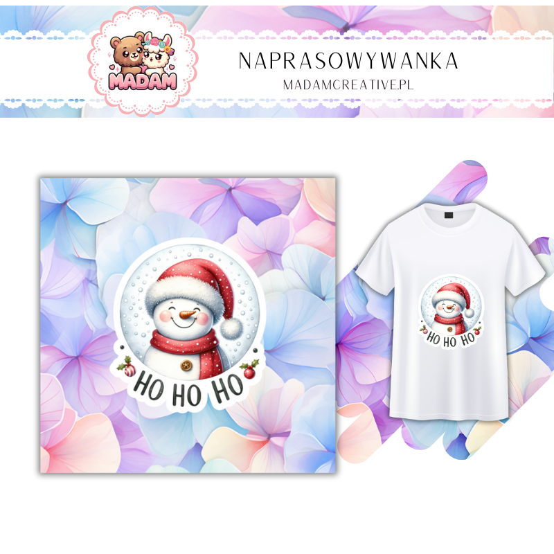 Naprasowywanka na ubrania MaDam - Uśmiechnięty Bałwan - Ho Ho Ho! Śnieżny urok na każdej tkaninie! 13 cm