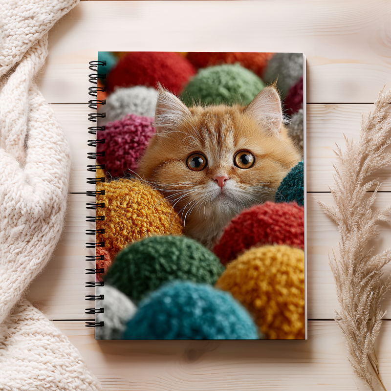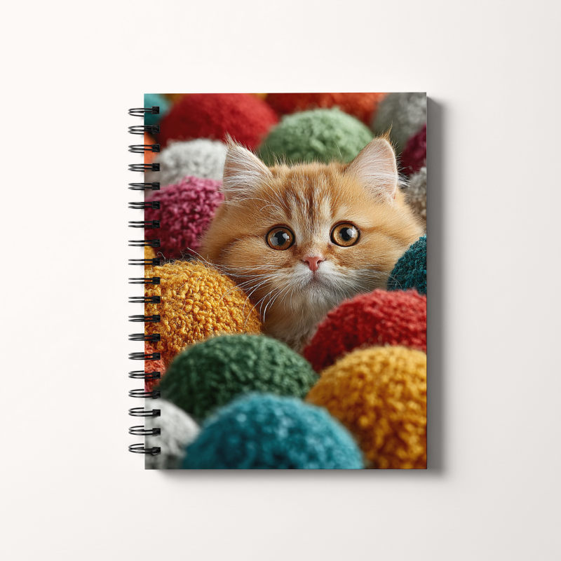 Notes A5 gładki 80 kartek Kotek w pastelowych pomponach MaDam Creative
