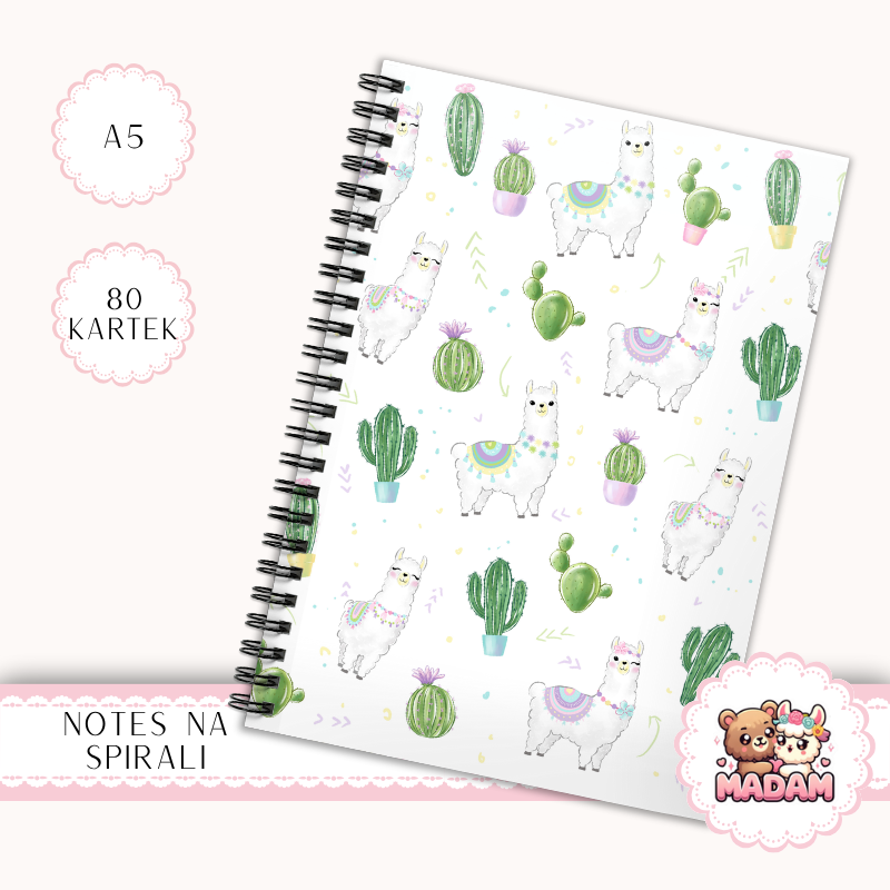 Notes A5 w kropki 80 kartek Lama i Kaktusy Pastelowy Wzór MaDam Creative