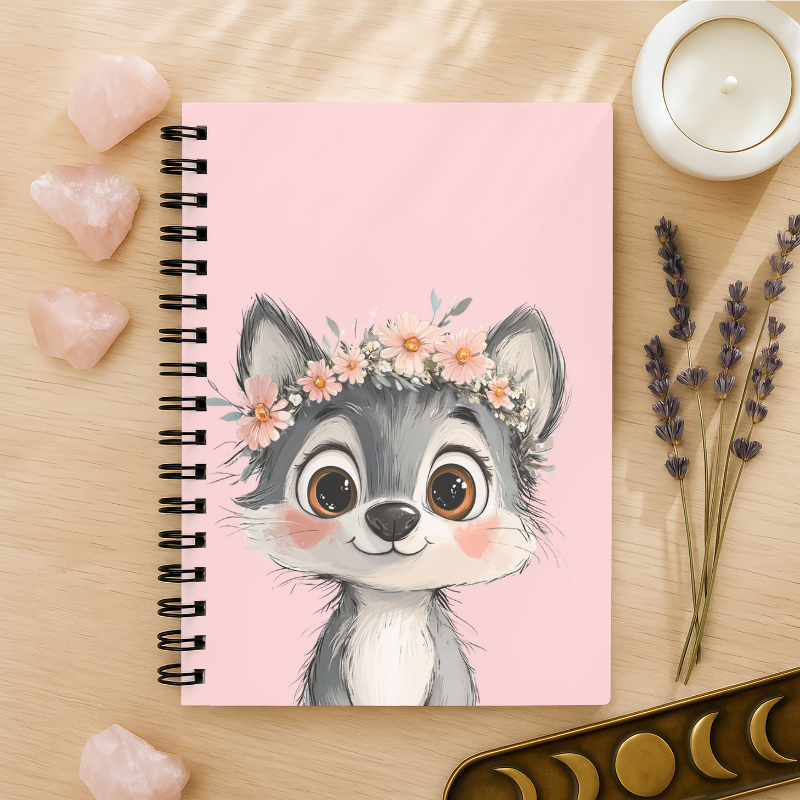 Notes A5 w kropki 80 kartek Wilczek w Wianku Różowe Kwiaty MaDam Creative