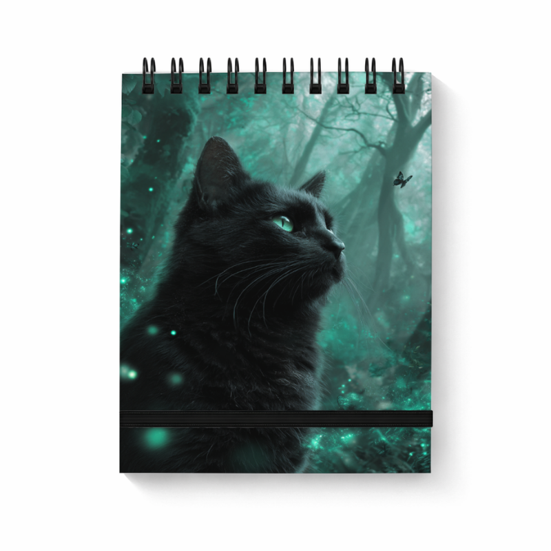 Notes na spirali z gumką A6 80 kartek gładki Czarny kot w zaczarowanym lesie MaDam Creative