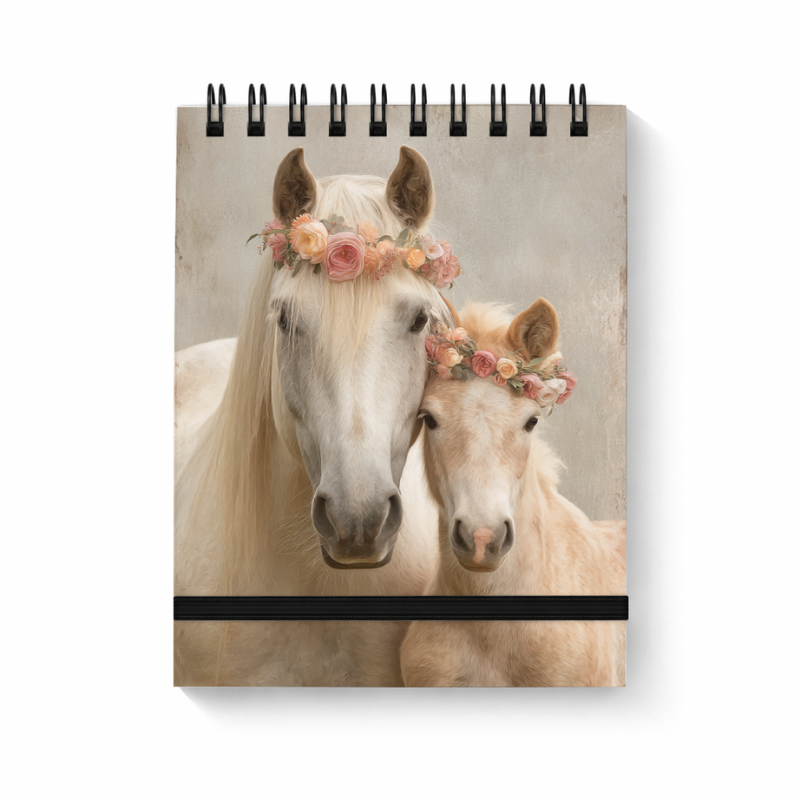 Notes na spirali z gumką A6 80 kartek gładki Dwa konie w kwiatowych wiankach MaDam Creative