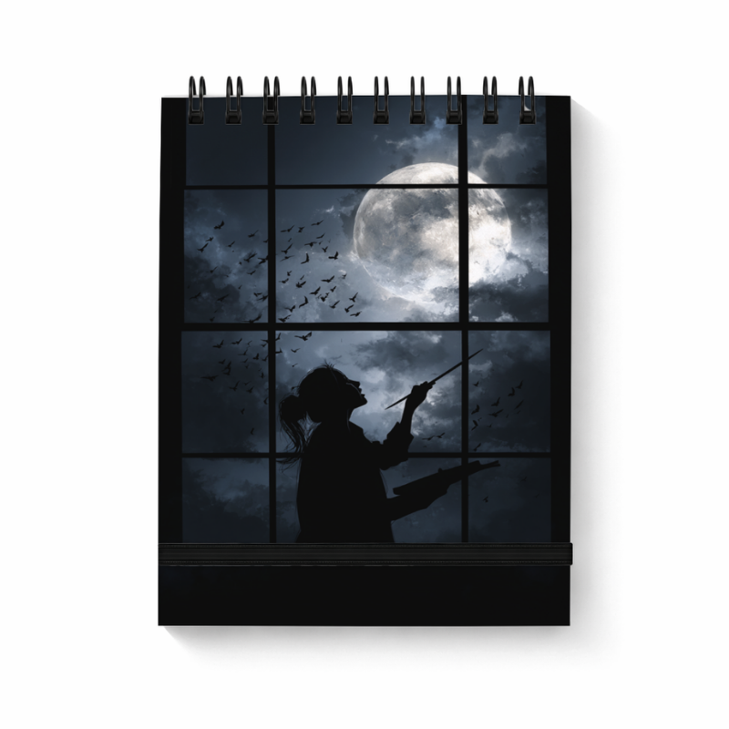Notes na spirali z gumką A6 80 kartek gładki Dziewczyna przy oknie i księżycu MaDam Creativ