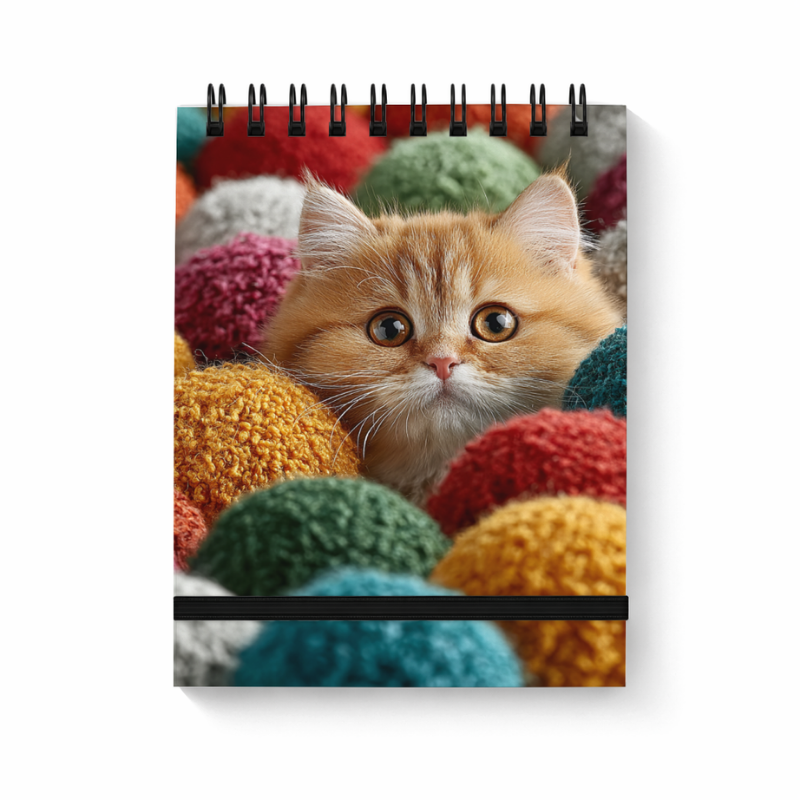 Notes na spirali z gumką A6 80 kartek gładki Kotek w pastelowych pomponach MaDam Creative