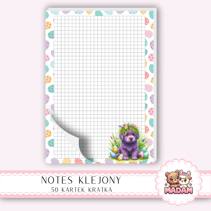 Notes z wyrywanymi kartkami Pies Wielkanoc 2 klejony A6 50 kartek, MaDam Creative