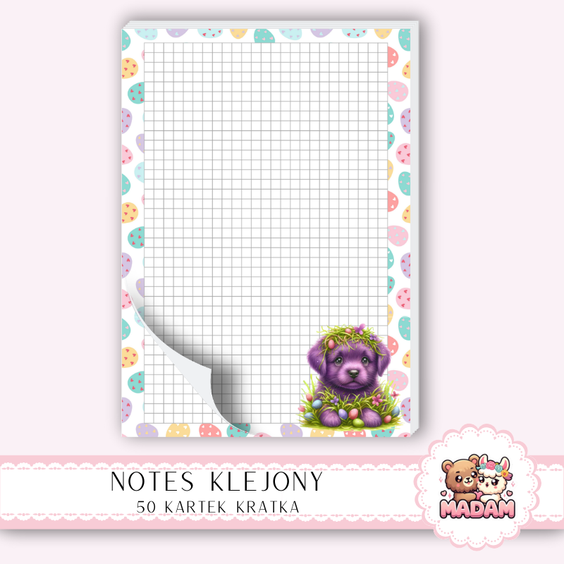 Notes z wyrywanymi kartkami Pies Wielkanoc klejony A6 50 kartek, MaDam Creative