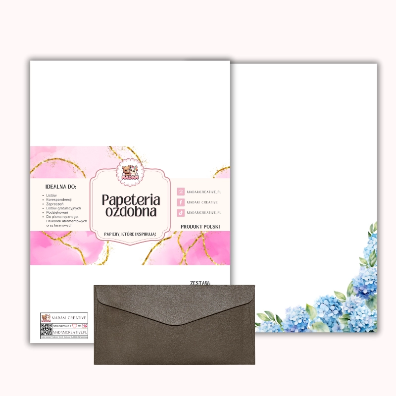 Papeteria ozdobna A4 z kopertami – zestaw Błękitne hortensje MaDam Creative