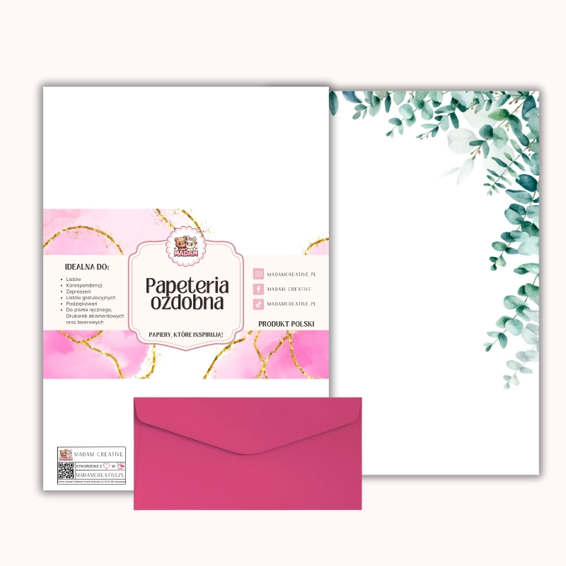 Papeteria ozdobna A4 z kopertami – zestaw Eukaliptusowy akcent MaDam Creative