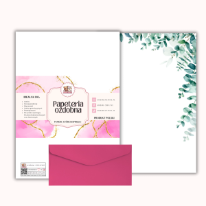 - Nazwa produktu: Papeteria ozdobna A4 z kopertami – zestaw