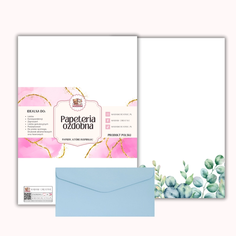 Papeteria ozdobna A4 z kopertami – zestaw Eukaliptusowy dół MaDam Creative