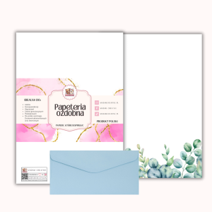 - Nazwa produktu: Papeteria ozdobna A4 z kopertami – zestaw