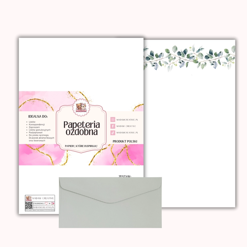 Papeteria ozdobna A4 z kopertami – zestaw Eukaliptusowy wianek MaDam Creative