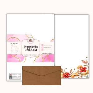 - Nazwa produktu: Papeteria ozdobna A4 z kopertami – zestaw