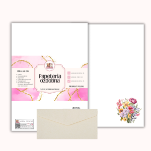 - Nazwa produktu: Papeteria ozdobna A4 z kopertami – zestaw