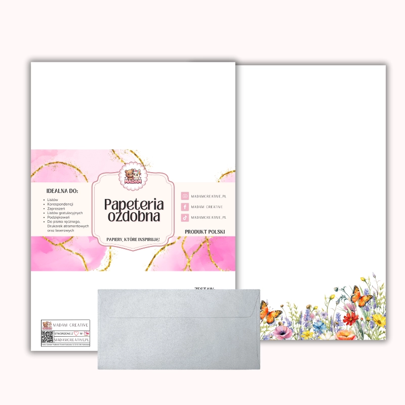 Papeteria ozdobna A4 z kopertami – zestaw Kwiatowa łąka MaDam Creative