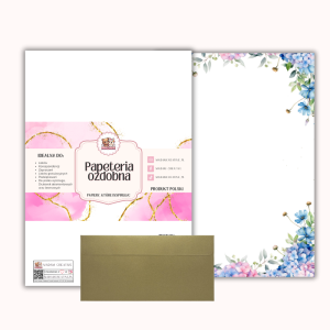 - Nazwa produktu: Papeteria ozdobna A4 z kopertami – zestaw