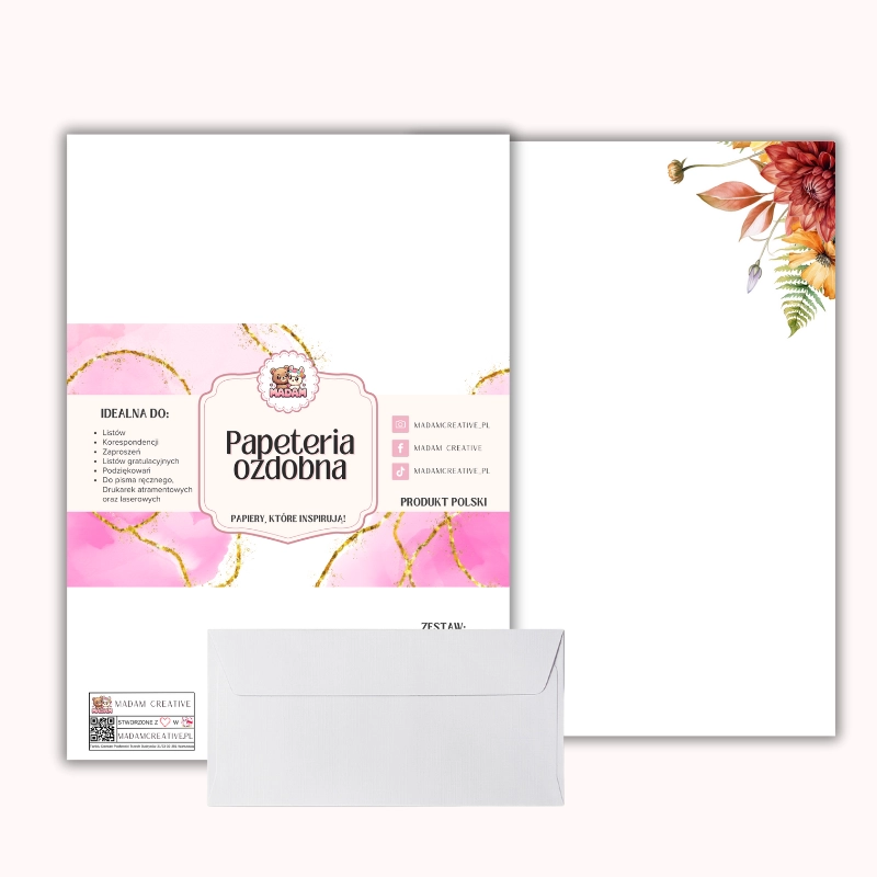 Papeteria ozdobna A4 z kopertami – zestaw MaDam Creative