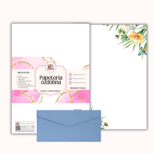 - Nazwa produktu: Papeteria ozdobna A4 z kopertami – zestaw