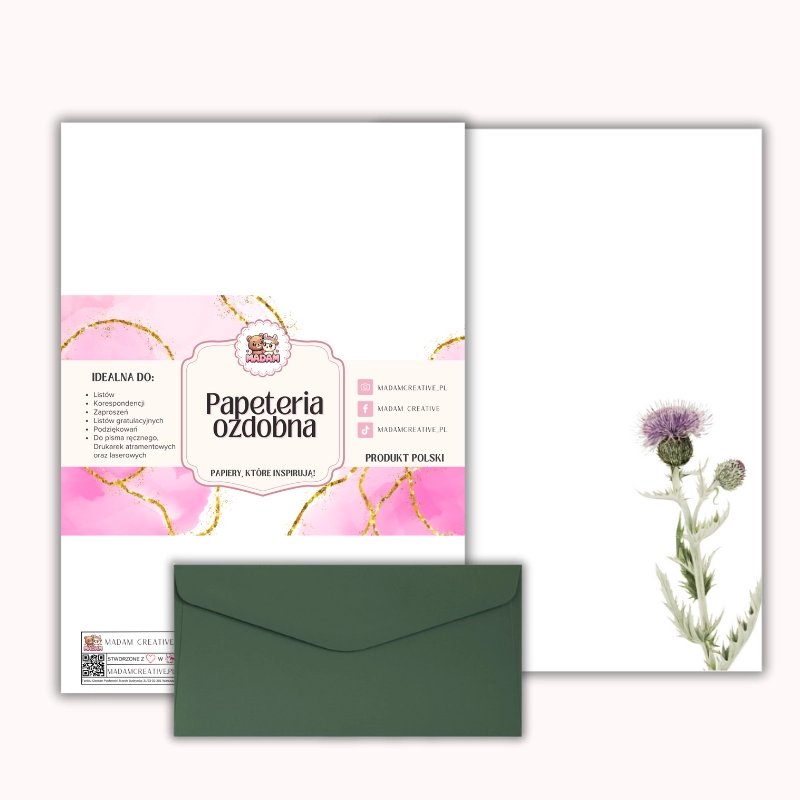 Papeteria ozdobna A4 z kopertami – zestaw Polny oset MaDam Creative