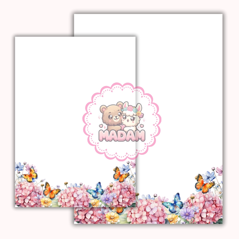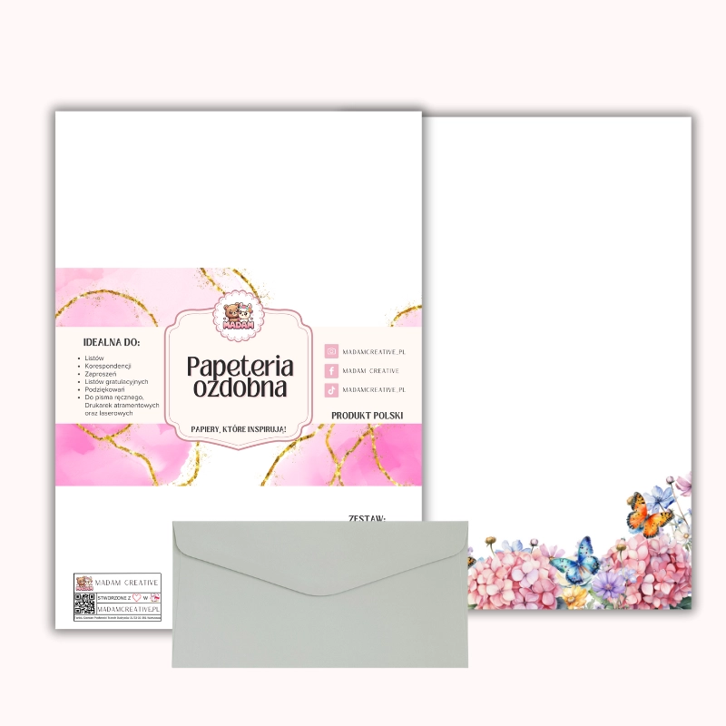 Papeteria ozdobna A4 z kopertami – zestaw Różowe hortensje i motyle MaDam Creative