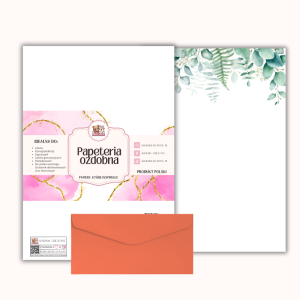 - Nazwa produktu: Papeteria ozdobna A4 z kopertami – zestaw