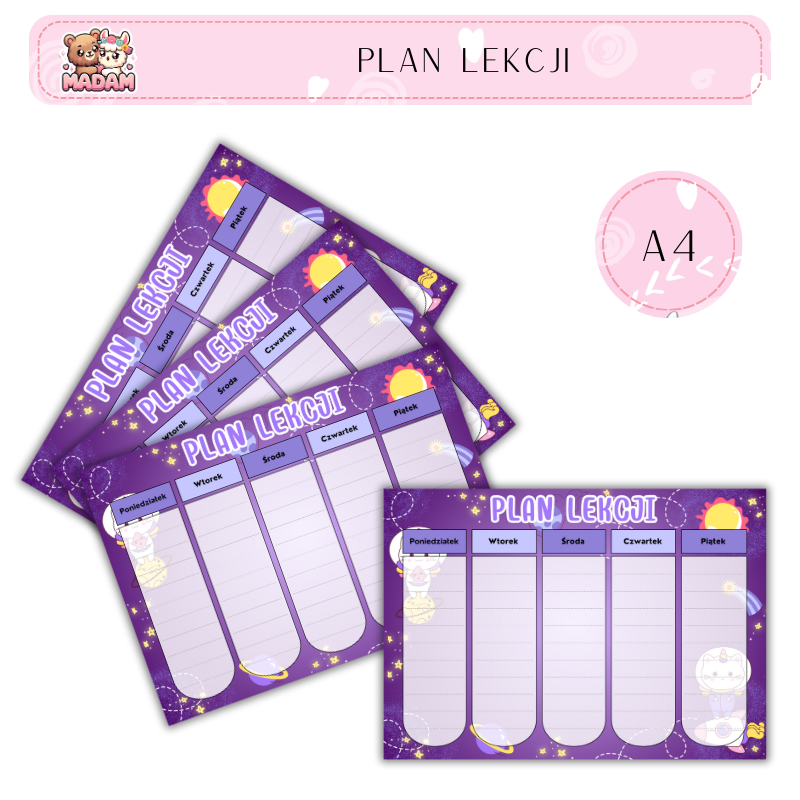 Plan lekcji A4 MaDam Creative – prosty sposób na porządek w szkolnym tygodniu