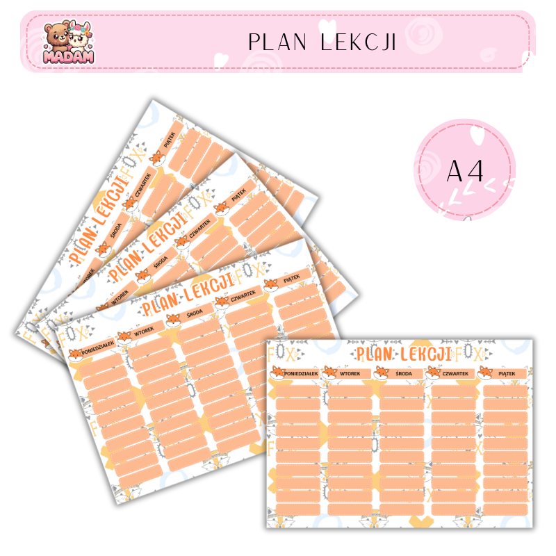 Plan lekcji A4 MaDam Creative – prosty sposób na porządek w szkolnym tygodniu