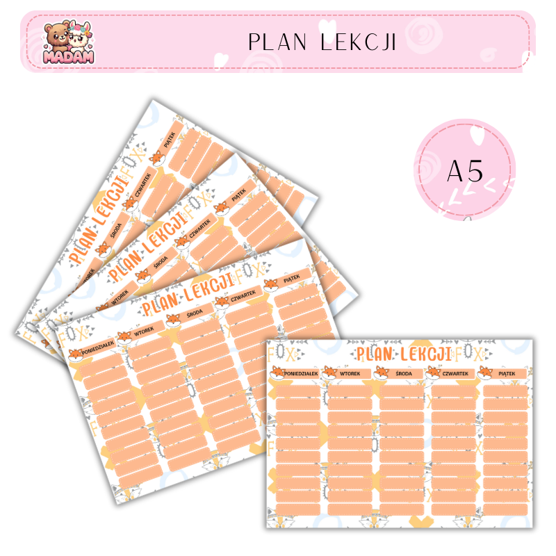 Plan lekcji A5 MaDam Creative – prosty sposób na porządek w szkolnym tygodniu
