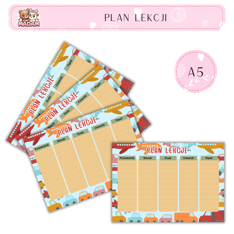 Plan lekcji A5 MaDam Creative – prosty sposób na porządek w szkolnym tygodniu