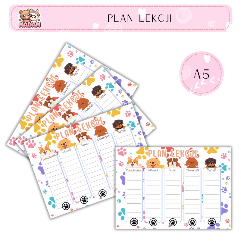 Plan lekcji A5 MaDam Creative – prosty sposób na porządek w szkolnym tygodniu