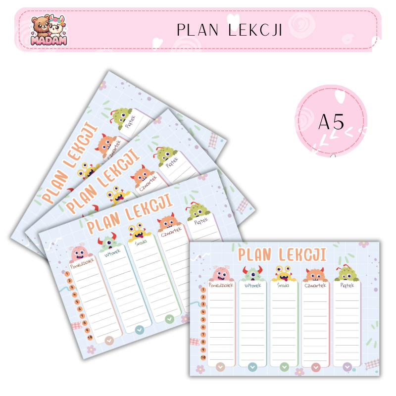 Plan lekcji A5 MaDam Creative – prosty sposób na porządek w szkolnym tygodniu